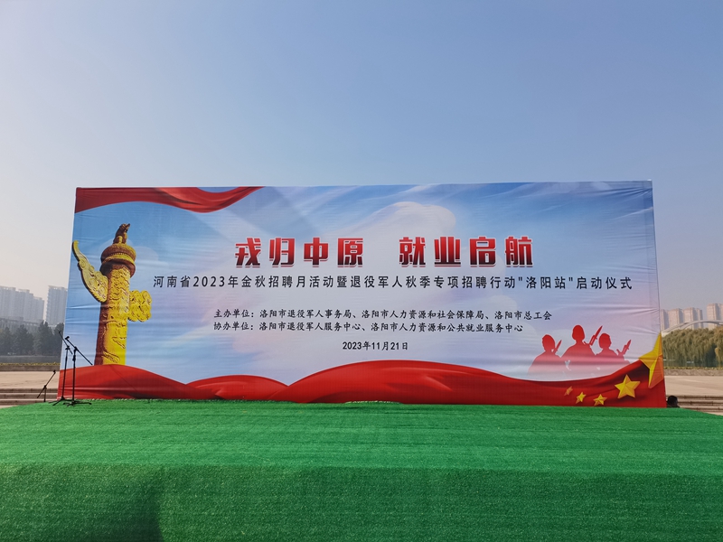 2023年11月21日,河南省2023年金秋招聘月活動暨退役軍人秋季專項(xiàng)招聘行動"洛陽站"啟動儀式。