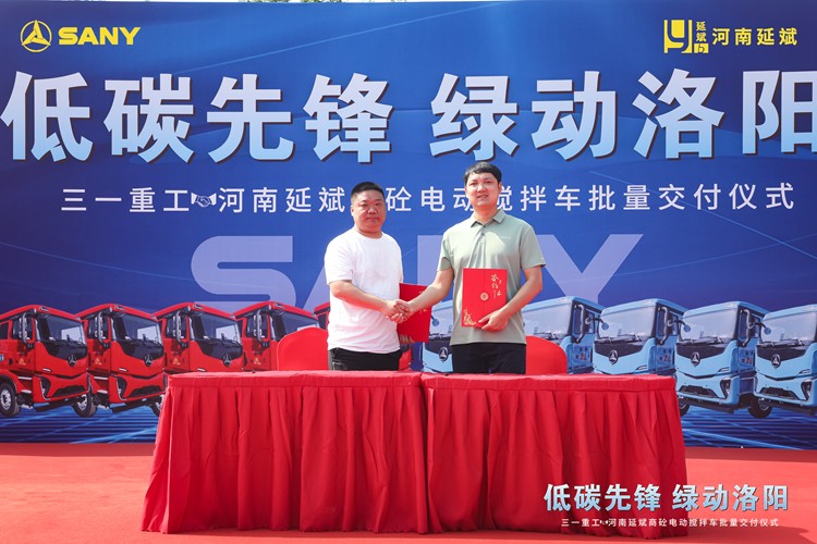 洛陽如意文化傳播有限公司,熱烈祝賀:2025年6月27日,“低碳先鋒  綠動洛陽”三一重工&河南延斌電動攪拌車批量交付儀式,順利完成。